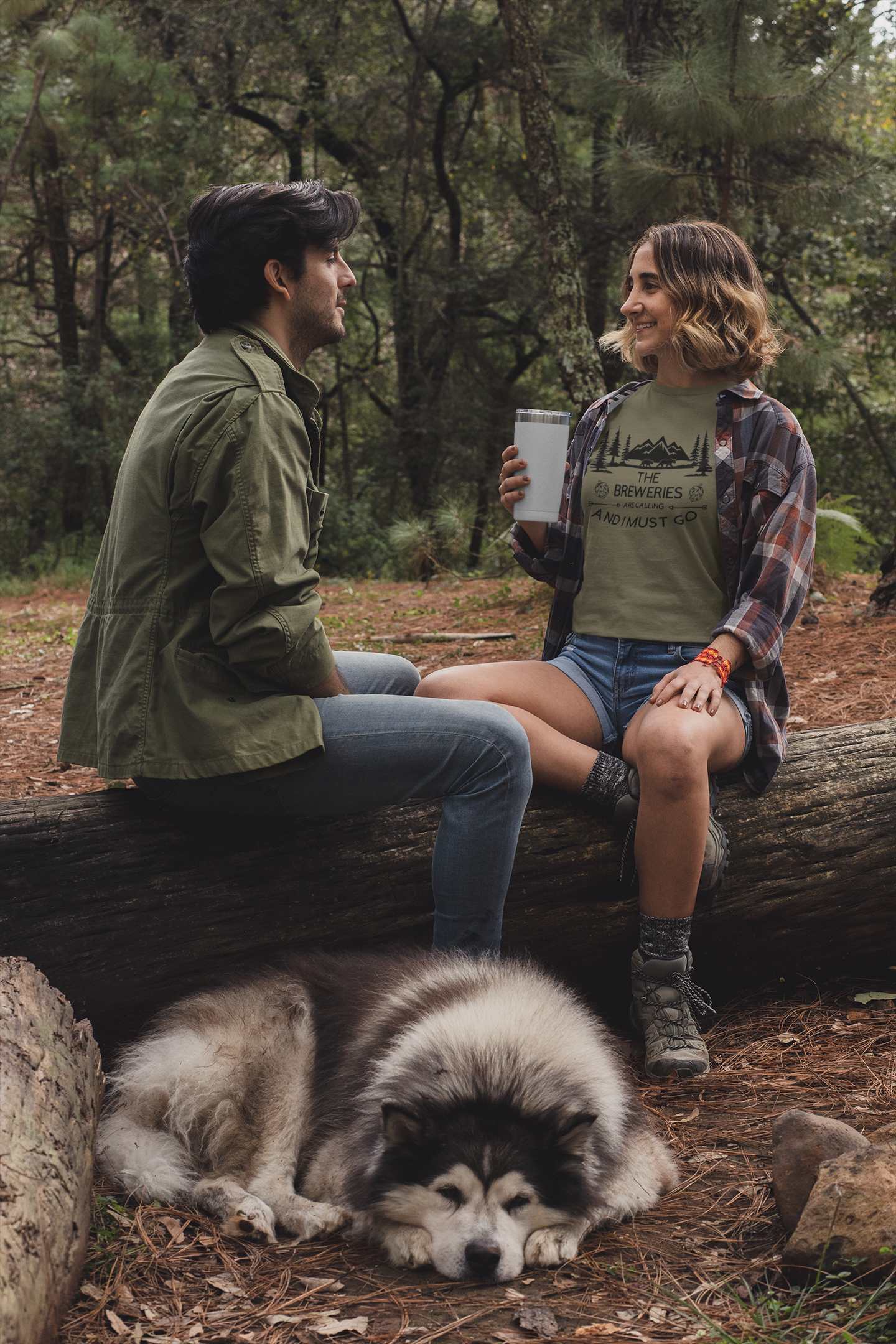 Where are all the beer geeks & craft beer enthusiasts? "The breweries are calling and I must go" t-shirt is in olive green with black writing. Cause everyone needs a brewery shirt, right!? Perfect for those who love to visit local breweries, go on beercations and enjoy beer festival hopping.